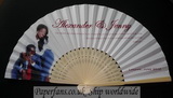 Custom printed paper wedding fans: Size: 21x38cm open. Material : bamboo, thick paper. Color: 4 color printing Shipping: we ship items worldwide with door to door shipping service. Minimum order : 100pieces. Payment: via paypal. Sample: available. Pu